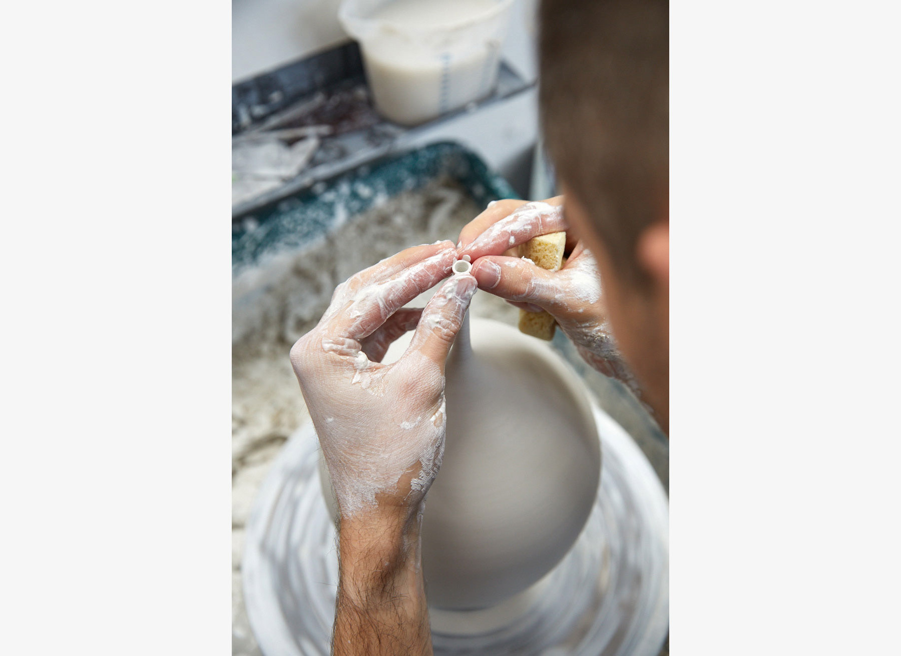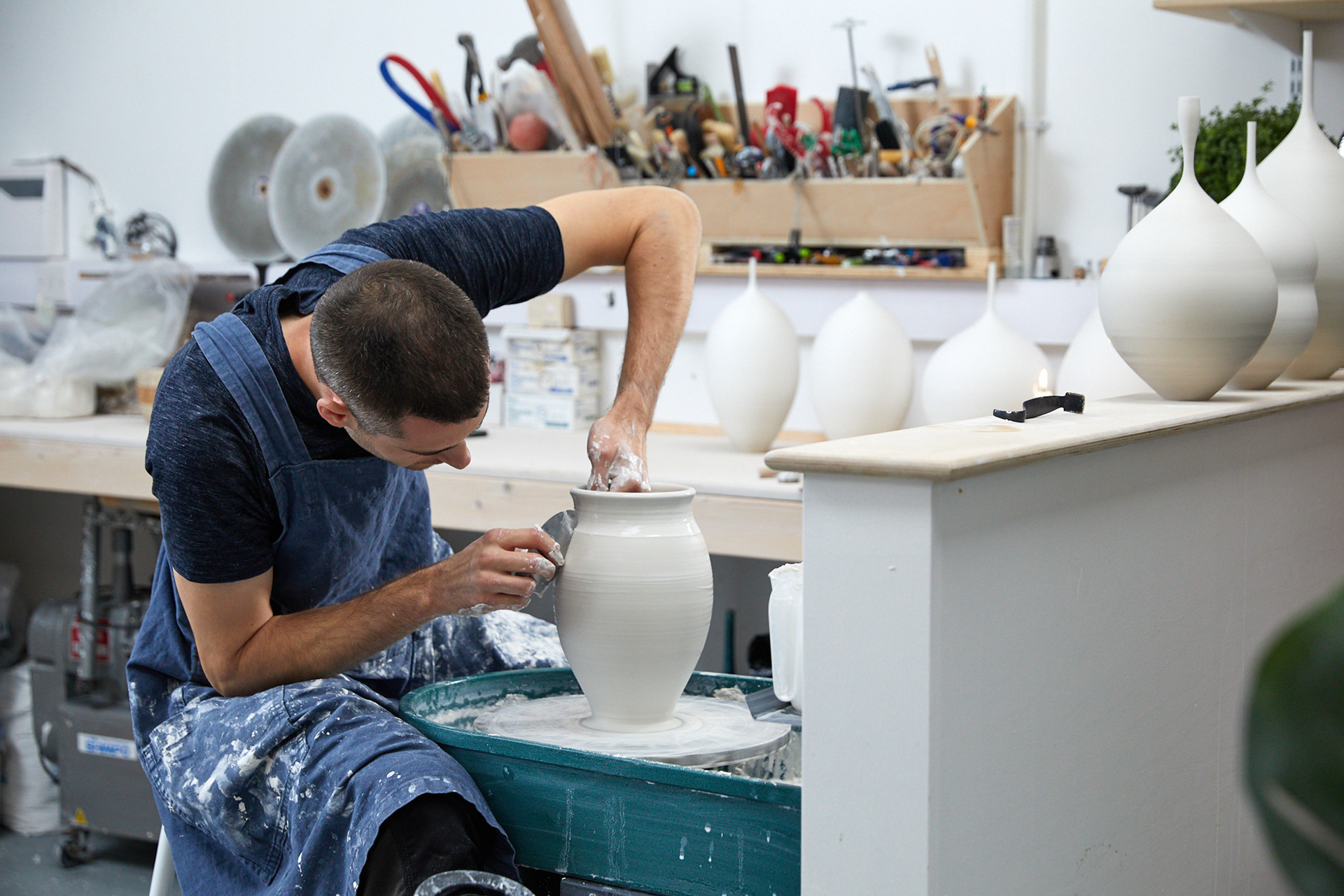 Photo // Ceramic artist Matt Horne at work in his studio in Hythe, Kent, where he creates highly sought after crystalline glazed ceramics.